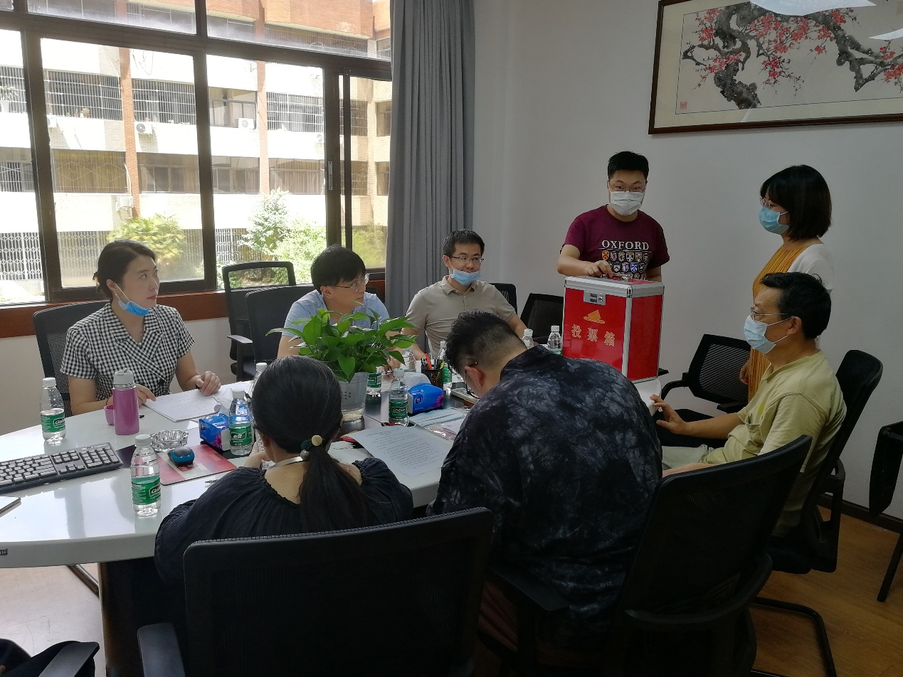 随后,由监票人徐召清同志宣读选票填写方法、展示投票箱,计票人景宇琨同志分发选票。选票填写完毕后,全体党员逐一将选票投入投票箱。由监票人、计票人当场统票和唱票,完成选举议程。