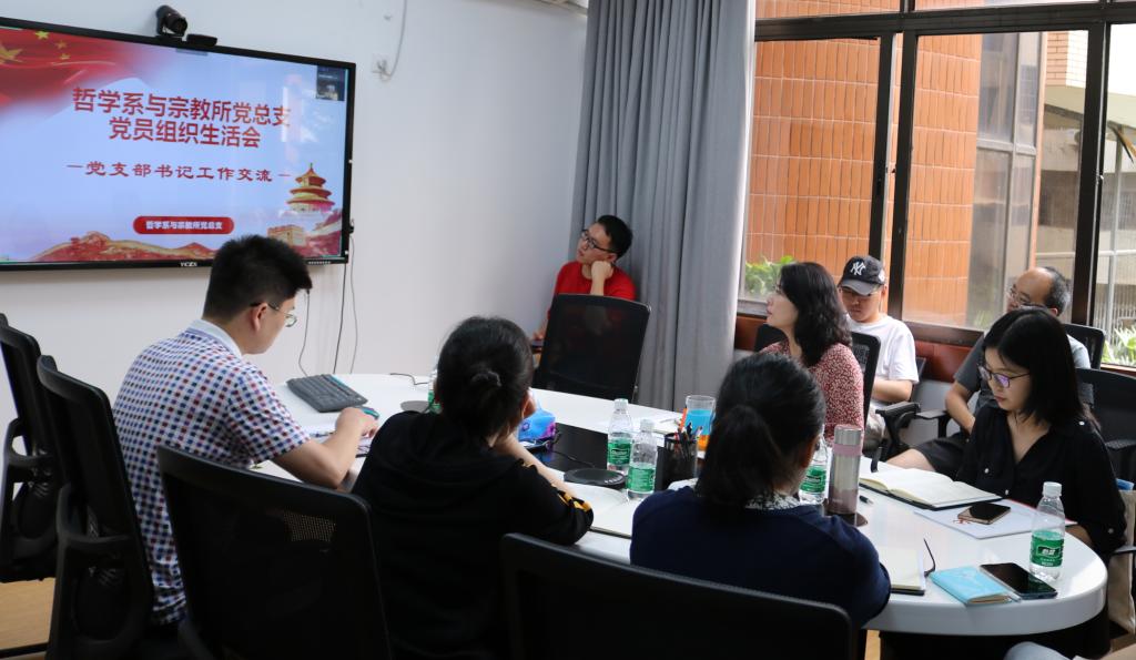 2020年7月10日下午15:00,“不忘初心,再启征程——热烈庆祝中国共产党建党99周年”哲学系与宗教所党总支微党课暨党员组织生活会在文科楼205会议室顺利举行,现场参会党员16名、其余党员通过腾讯会议云端参会,会议由李裴副书记主持。