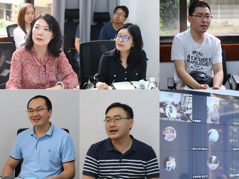 第二项议程由党支部书记作支部工作微党课暨工作交流。首先由教工一支部书记陈建美同志作《党支部书记培训示范班学习成果汇报》微党课,她从“党支部的任务、党支部的工作机制、党支部的组织生活以及党员教育管理工作条例”等方面,结合自己的心得体会,简明扼要的向全体党员同志传达了学校党委组织部7月3日举行的“2020年党支部书记培训示范班”专题学习内容和精神,为党总支的支部建设提供了重要参考和思路。紧接着,由学生一支部书记赵濛锐同志通过腾讯会议云端在线作《携手共抗疫情,践行宣言精神——哲学系与宗教所党总支学生第一支部跨校联合举办云端组织生活会》经验分享,她从东西南北中五所高校哲学党支部联合开展“携手共抗疫情 践行宣言精神”的组织生活会发起缘由、疫情防控期践行宣言的重要意义,哲学系与宗教所党总支学生一支部党员同志在疫情防控期响应党和国家号召践行宣言精神的举措与时代担当,以及五校联合发布《高校哲学研究生党支部共建倡议书》共同探索共建长效机制、特色组织生活会等方面的经验。