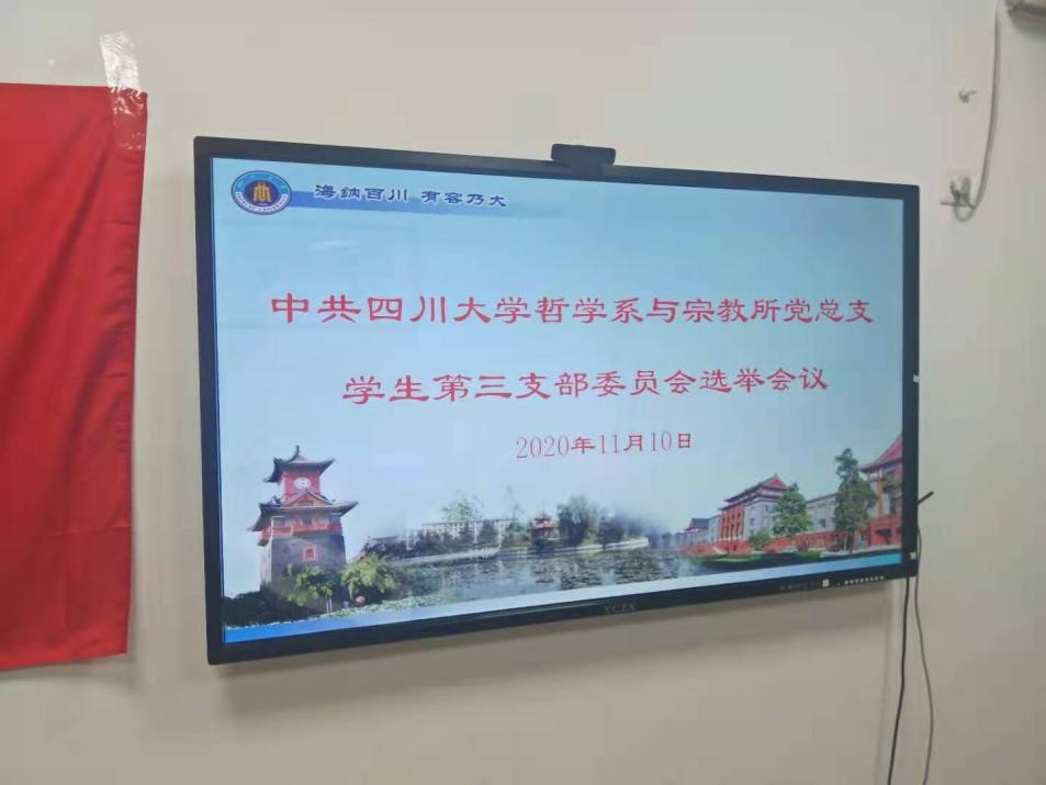 11月10日下午,哲学系与宗教所党总支学生第三支部委员会选举会议在文科楼205室召开,支部全体正式党员、预备党员参加会议,会议由党政办胡康林老师主持。