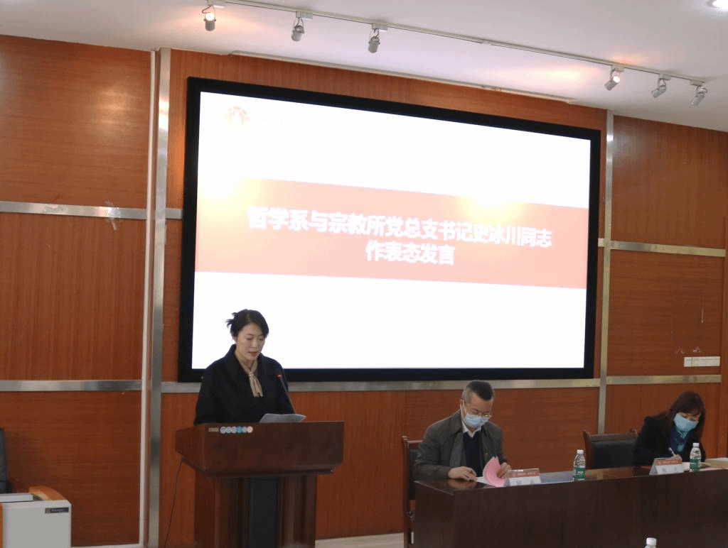 哲学系与宗教所党总支书记史冰川同志代表党总支作表态发言。表示,党总支将把巡察作为接受党性教育、加强党性锻炼、经受组织考验的重要机会,按照学校巡察工作要求,扎扎实实地支持配合,做好有关工作。一是摆正位置、端正态度,从讲政治、负责任的高度,充分认识开展巡察工作的重大意义,切实增强巡察监督的自觉性和责任感。二是严肃纪律、全力配合,全体师生要从大局和对工作认真负责的态度,坚持实事求是、客观真实地向巡察组提供情况、反映问题,主动配合巡察组开展工作。三是自觉接受监督、认真进行整改,以本次巡察为契机,推动哲学系和宗教所各项工作迈上新台阶、实现新发展。