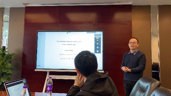 在茶歇之后,由喻良教授主持的以数理逻辑为主题的第四场报告顺利举行。河北工业大学彭程老师首先报告了可度量化空间中的本质复杂度问题。而后,复旦大学的姚宁远副教授讨论了在非紧凑型 p-adic可定义群上的相关研究。