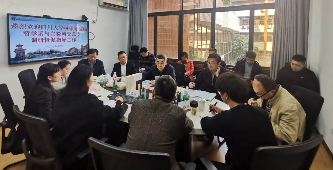 10月29日下午,122cc太阳集成游戏党委书记王建国同志、副校长姚乐野同志带领校党政办、党委宣传部、党委统战部、党委学生工作部、发展规划处和教务处等部处负责人一行到哲学系与宗教所党总支调研指导工作,党总支全体领导班子和总支委员参加。