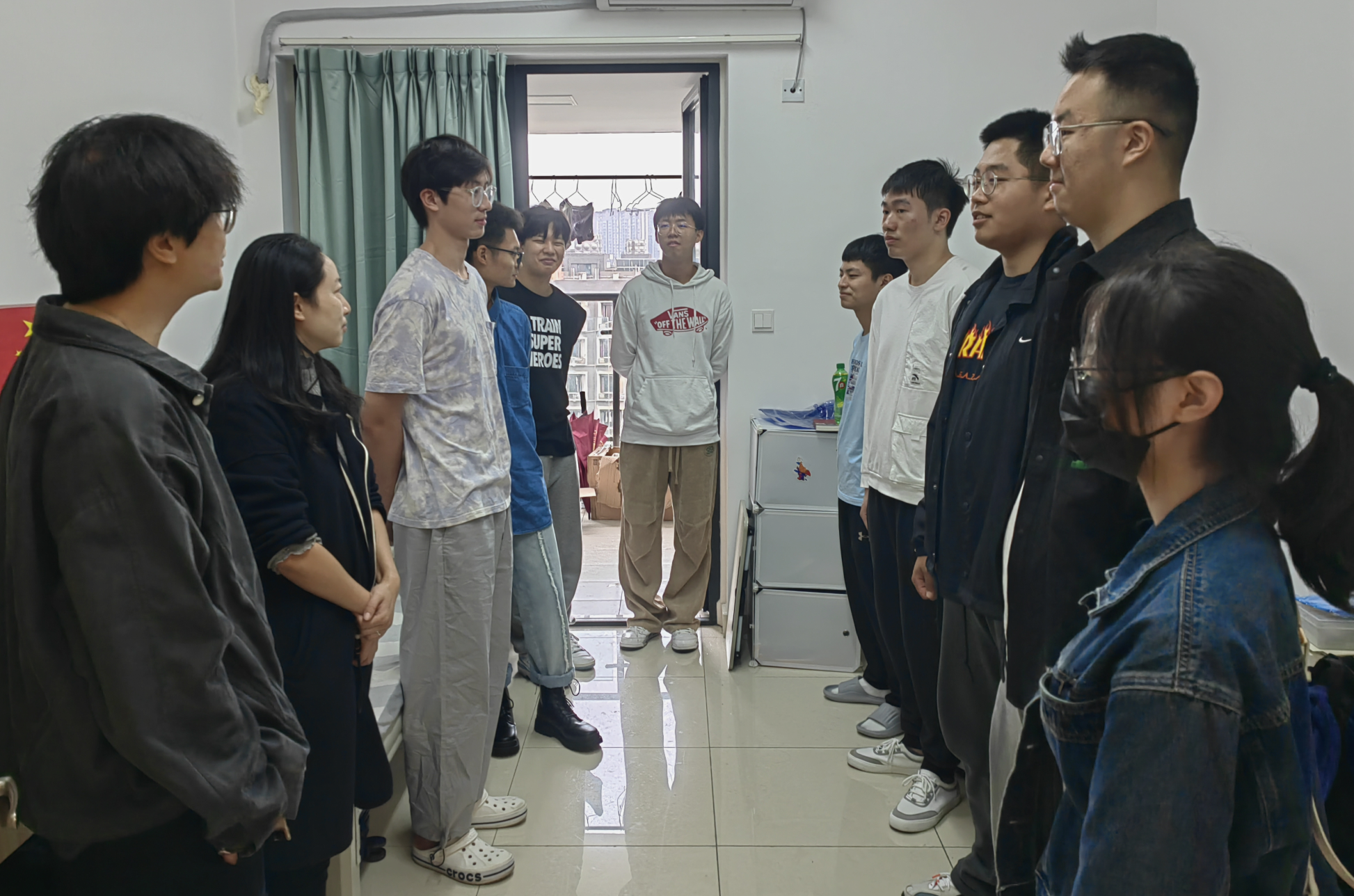 走访过程中,领导老师们认真察看寝室内部设施的情况。其中,熊林主任从宿舍文化、学习与生活态度等方面对新生提出建议,并勉励新生们怀着包容的心态拓展兴趣,尽快适应大学生活。史冰川书记与新生们进行亲切的交谈,并从做好未来学习规划、融洽室友关系、积极参与集体活动和德智体美劳全面发展等方面提出要求,寄予新生们殷切的希望。