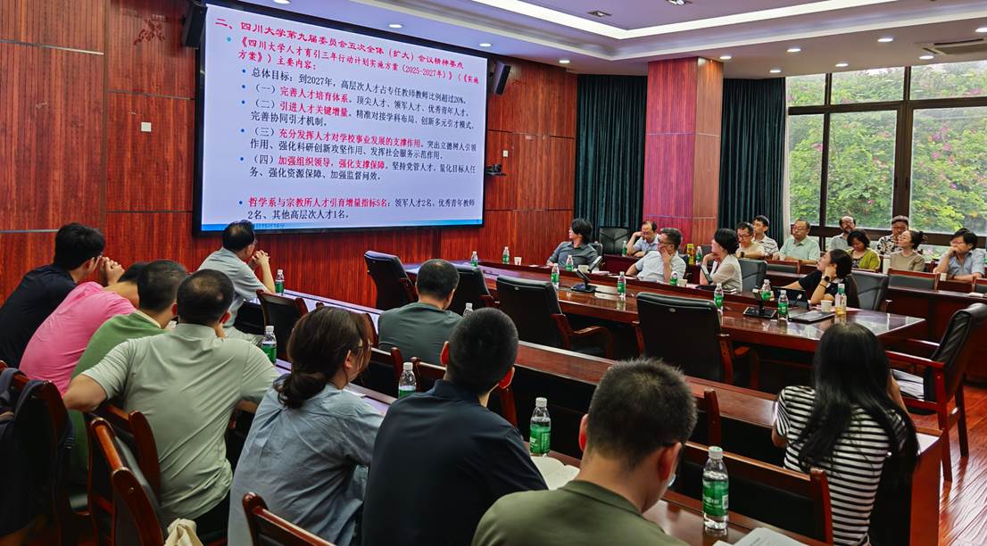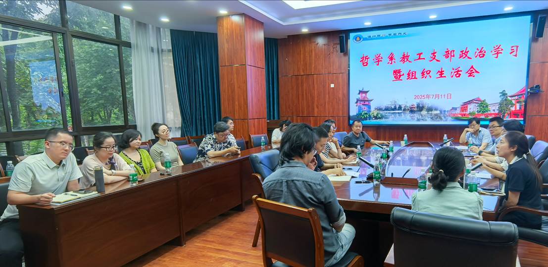 2025年7月11日下午,哲学系全体教职工大会暨政治学习会议在望江校区文科楼200号举行,全体教职工参加会议,会议由党总支书记史冰川主持。