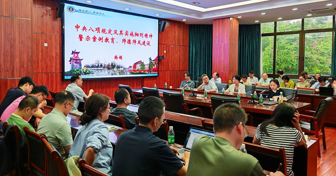 韩媚副书记领学中央八项规定及其实施细则有关文件精神,开展中央八项规定警示教育和典型案例学习,对师德师风建设有关工作进行了强调。
