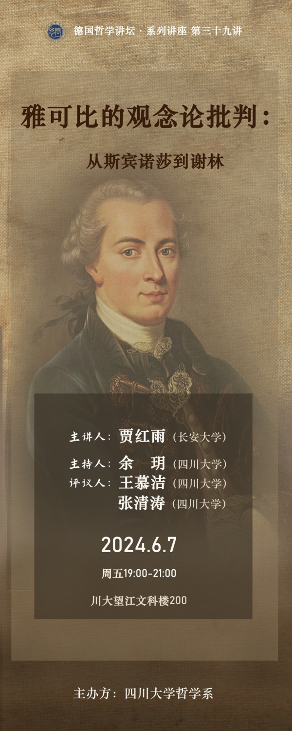 讲座题目:雅可比对观念论的批判:从斯宾诺莎到谢林
