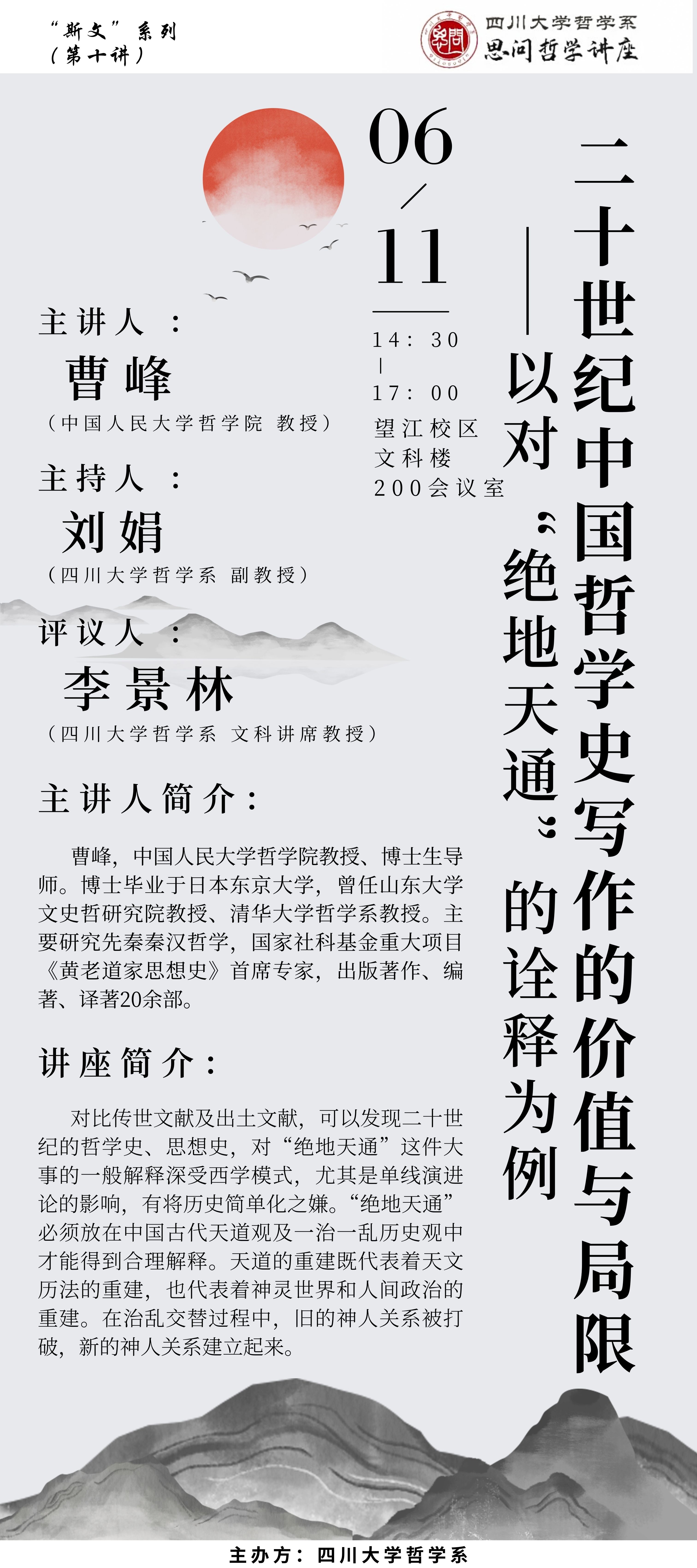 讲座题目:二十世纪中国哲学史写作的价值与局限——以对“绝地天通”的诠释为例