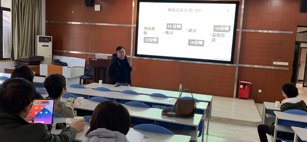 周加贝老师以“线上线下混合式教学的实践与设计”为题,结合线上线下多样式教学、“探究式-小班化”教学等内容,从具体事例、经历感受方面,对相关内容进行解读分析。