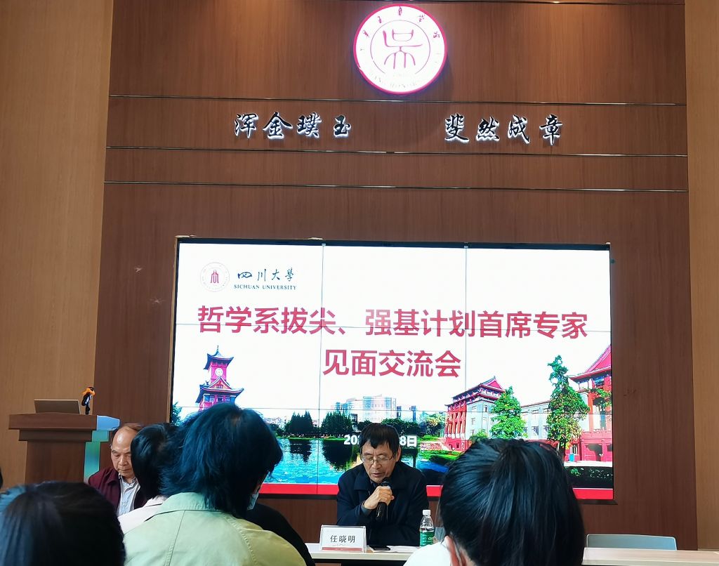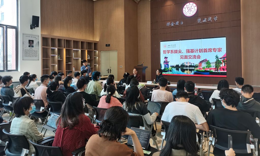2022年4月8日,哲学系拔尖、强基计划首席专家见面会在江安校区吴玉章书院22舍多功能厅顺利举行。122cc太阳集成游戏文科杰出教授詹石窗教授、文科讲席教授任晓明教授与全体2020、2021级本科同学参加见面会。