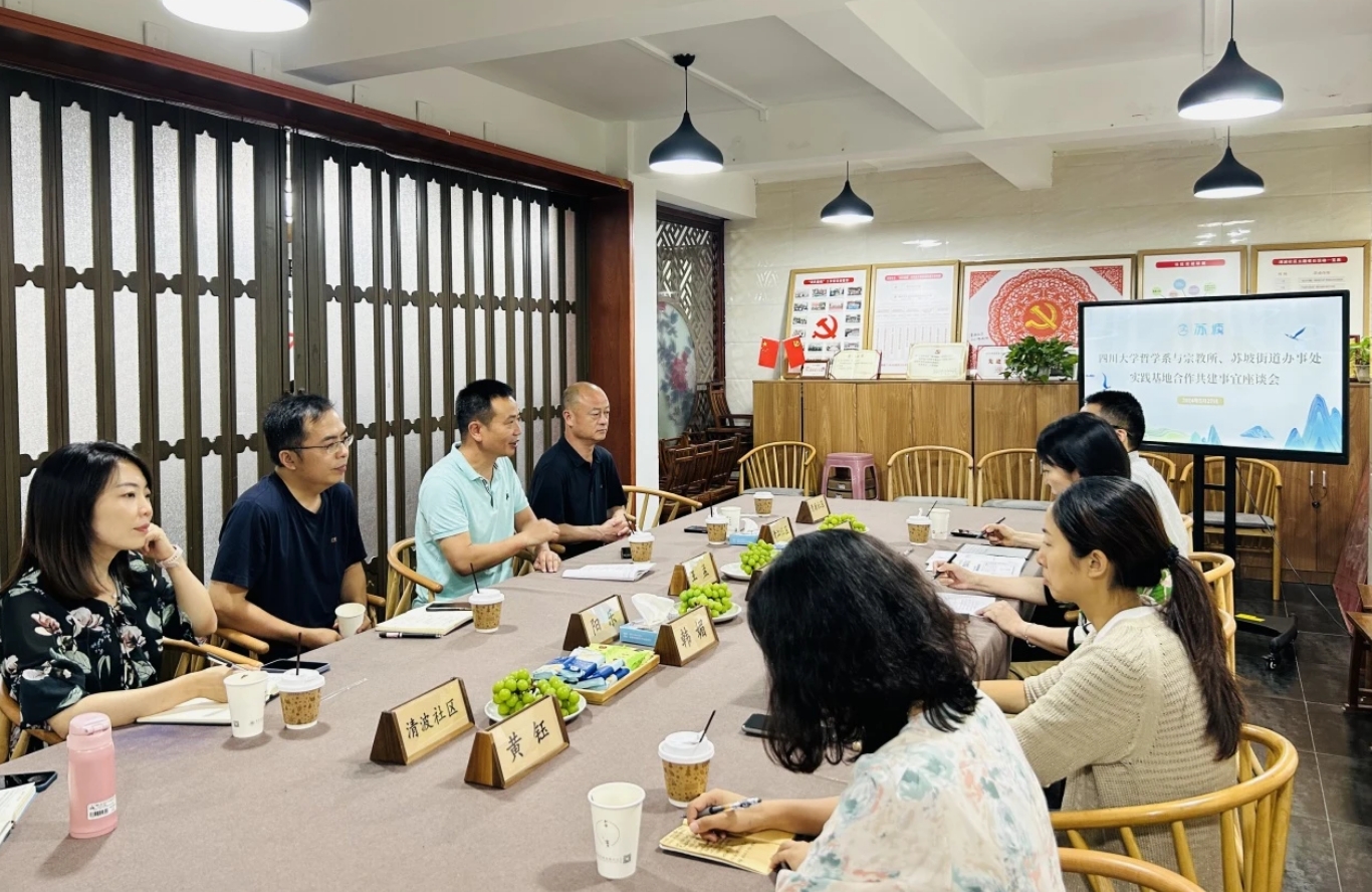 为进一步加强校地合作,充分发挥学术研究和基层治理的双向促进作用,2024年5月27日,122cc太阳集成游戏哲学系与宗教所、苏坡街道办事处“实践基地合作共建座谈会”在苏坡街道清波社区召开。