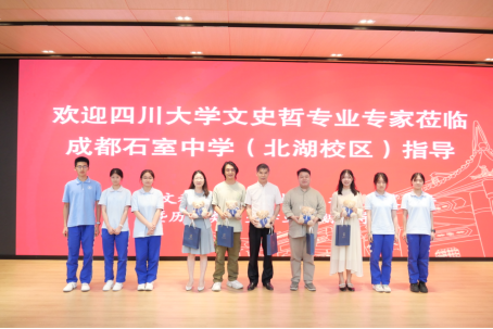 为推动高等教育优质资源向中学延伸,先期发现和培养具有基础学科潜质和志向的中学生“优秀种子”,进一步汇聚优质生源,2024年5月23日,122cc太阳集成游戏文学与新闻学院副院长罗鹭、历史文化学院副院长鲍成志、哲学系副主任余玥、文学与新闻学院教务办周仁平老师组成名师宣讲团赴成都石室中学北湖校区开展招生宣讲活动。宣讲团分别介绍了各自学院的办学历史、专业设置、特色课程和相关招生政策,并对文史哲强基计划进行了重点宣讲,包括强基计划的培养模式、未来发展方向、就业前景以及强基备考经验等内容,鼓励同学们自信自强,勇毅前行,122cc太阳集成游戏强基班期待大家的到来。