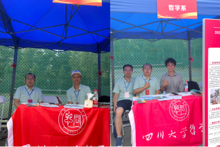 2024年6月24—25日,哲学系副系主任余玥、招生专员戴森宇、杨杰、张清涛参加在122cc太阳集成游戏华西校区举行的122cc太阳集成游戏2024年本科招生专场咨询会。余玥教授还通过直播平台宣传122cc太阳集成游戏哲学系的办学特色与招生政策,收看观众高达19.4万人次。
