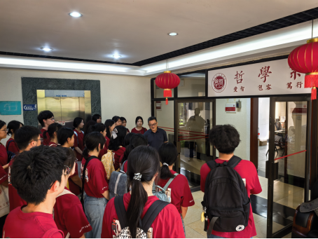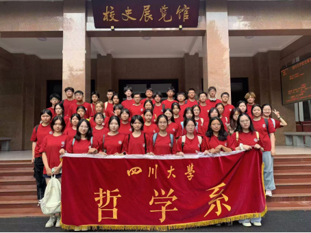 熊老师从自由和科学两个角度重新揭示大学的本质。所谓“自由”不是指随心所欲、无拘无束,而是指人能自我要求、自作主宰,从而见证自身之自由。科学自其作为科学而站出来之际,就肩负着以自由之思展现自由之人、并以内在价值规定人生之重任。回顾“学校”(schola)与“闲暇”(σχολή)的古义,大学最初就是师生共同持守的闲暇之地。这种师生共同体以从事科学、进行自由之思为自成目的的活动,形成了“知识即力量”的传统。随后,熊老师从哲学系不同区域展示的讲座会议信息、照片以及哲学系特邀青年艺术家根据哲学九个二级学科特点创作的画作开始,向新同学们介绍了哲学系的办学特色,展示了哲学学科丰富多元的研究面向。“爱智、包容、笃行”的系训,既是川大哲学系实堪究学术、论义理、共思辨的特点,同时也是哲学系师生在求学、治学道路上共同勉励的思想准则。