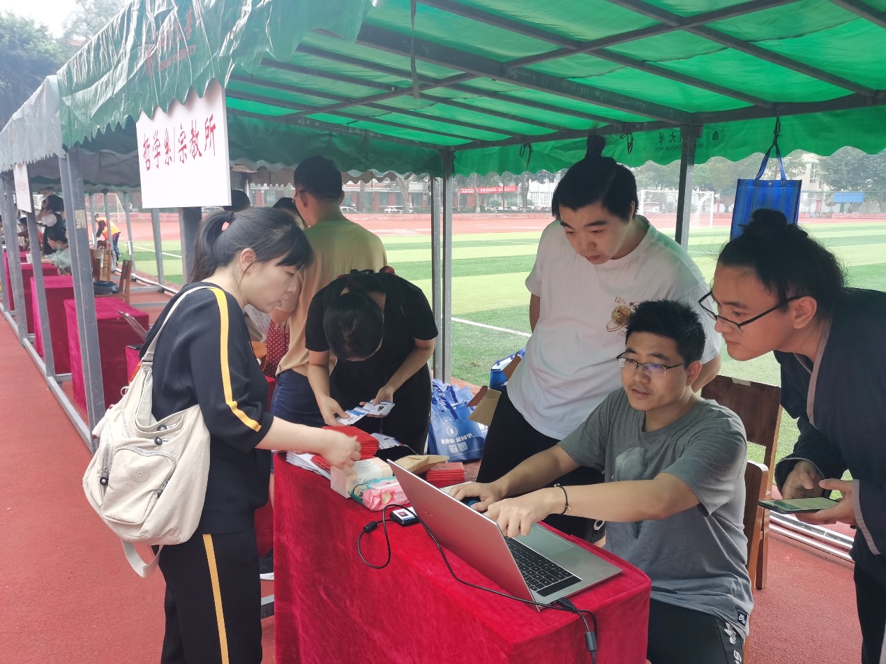9日清晨,在哲学系与宗教所党总支李裴副书记的现场安排与调度下,工作人员有条不紊地完成迎新摊点的布置和物资的摆放,反复熟悉新生报到流程,悉心检查新生信息录入系统,确保迎新工作顺利无误地进行。