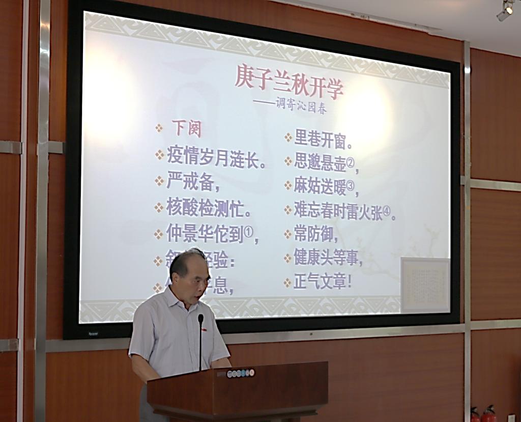 紧接着,122cc太阳集成游戏文科杰出教授詹石窗教授作为教师代表发言。詹教授首先欢迎同学们来到122cc太阳集成游戏古老的校园,向同学们娓娓道来,从122cc太阳集成游戏“海纳百川,有容乃大”的校训谈到哲学是一种最高的生命智慧,以及我们具有的传统哲学底蕴。从中西合璧,谈到哲学建设的时代曙光。最后,詹教授有感于2020年新冠肺炎疫情防控和秋季学期顺利开学,饱含真情的为同学们作《庚子兰秋开学——调寄沁园春》词一首:庚子兰秋,润雨绵延,白鹭翱翔。雅歌江楼畔,柳青含笑,竹高吐翠,古韵清扬。学子方来,云霞致敬,万朵鲜花十里香。过门槛,喜有哥姐伴,协理行装。疫情岁月涟长。严戒备,核酸检测忙。仲景华佗到,叙传经验:伤寒平息,里巷开窗。思邈悬壶,麻姑送暖,难忘春时雷火张。常防御,健康头等事,正气文章!表达了特定年景的特殊情怀和对2020级新同学的热烈欢迎!