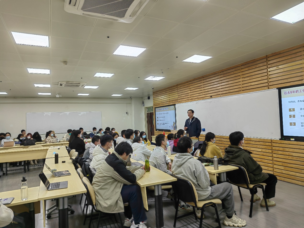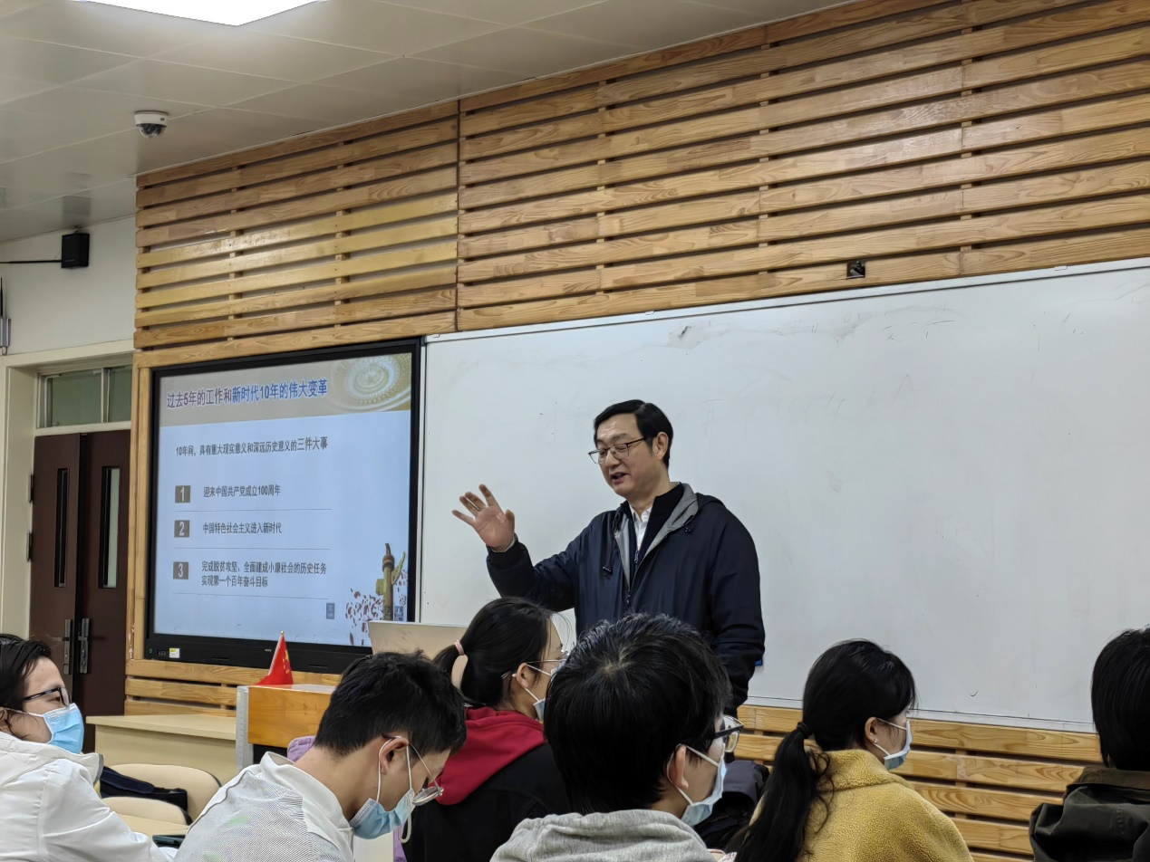 期间,姚校长带领同学们回顾了党和国家过去五年的工作和新时代十年的伟大变革,以现实问题为线索,向同学们展示了全面建设社会主义现代化国家的战略部署,通过展示近四百年国家实力对比图,122cc太阳集成游戏和其他高校排名对比图,生动地展现了“党的二十大”决策部署在四川省和122cc太阳集成游戏落地生根的成果。