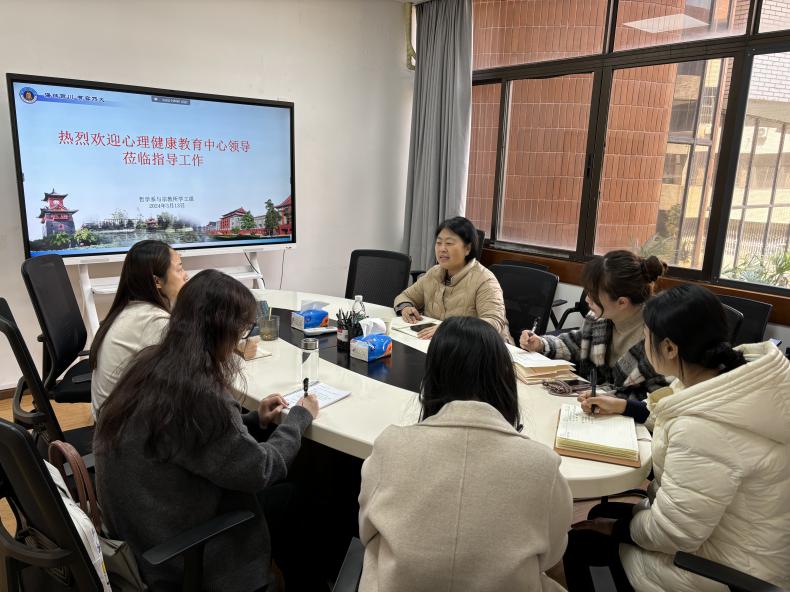 2024年3月13日,学校心理健康教育中心王英梅主任与综合科副科长唐加玥老师,到哲学系调研心理健康教育工作,哲学系与宗教所党总支韩媚副书记、哲学系思问行心理工作站老师、专职辅导员团队和学生心理委员代表参加座谈。