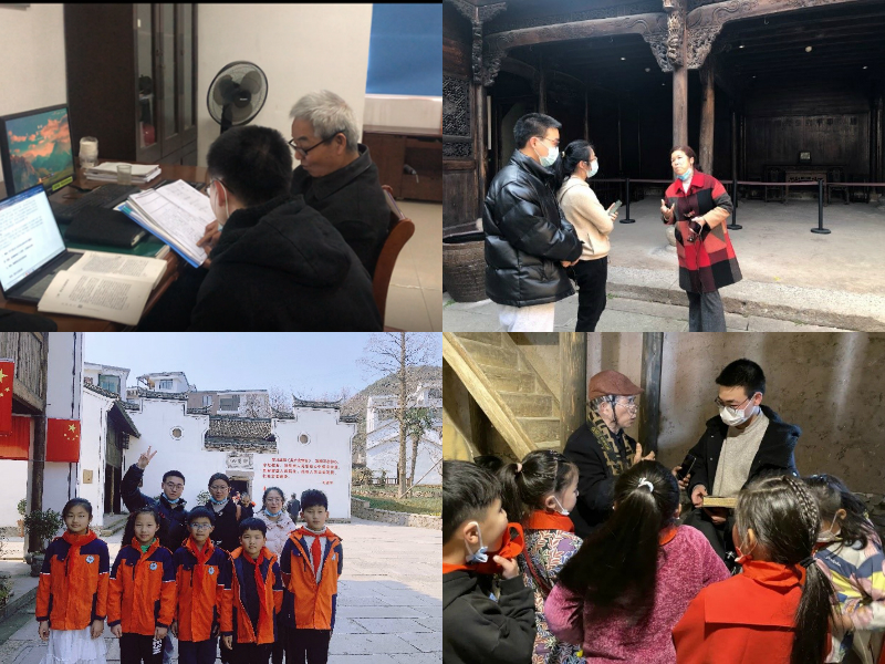 在调研期间,我们三访分水塘村陈望道故居,第一次我们进行了细致的参观和踩点。第二次,我们有幸遇见了民间收藏家吴广巨,向我们讲了染坊中陈列的义乌染布蕴含的文化,其中五子夺魁、愚公移山正体现了义乌劳动人民希望寄寓之勤耕与勇为精神。第三次我们与陈华仙讲解员进行了访谈,她满怀深情给我们讲述了望道的故事,并回忆了陈父和陈母幼时的教育,并和我们分享了她担任讲解员的原因和体会。在三次实地考察的过程中,我们与三所小学进行沟通,同他们分享陈望道的故事,并同他们一起进行实践活动。杨健、杨昕悦则全程负责采访和访谈稿件的整理工作和拍摄工作。