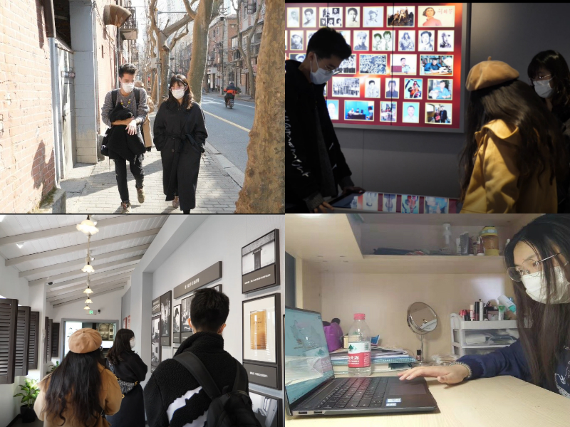 上海线由梁晓彤、周嘉茗、陈晨组成,他们走访了陈望道到上海以后参与马克思主义宣传和扩大党的影响力的工作地点和《共产党宣言》翻译出版地,从渔阳里到成裕里,从上海《新青年》编辑部旧址到上海团中央机关旧址纪念馆,他们在那里进行了细致的考察,对纪念馆所展示的资料进行了详细地阅读,并进行了短拍摄工作。负责在上海实地调研的一行,首先进入了老渔阳里-----中国共产党第一个早期组织的诞生地,以陈独秀、陈望道为代表的中国先进分子们在其中出版、编辑《新青年》杂志,宣传马克思主义。