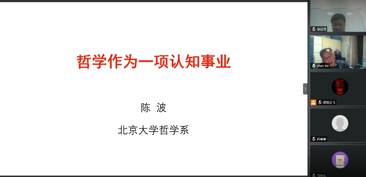 2020年11月12日晚上19:00,由122cc太阳集成游戏哲学系科学哲学与逻辑学教研室主办的“逻辑、认知与互动”系列讲座第二讲“哲学是一项认知事业”准时开讲。本次讲座依然是由北京大学哲学系教授陈波老师主讲,122cc太阳集成游戏哲学系副教授徐召清老师主持。讲座以腾讯会议的形式进行,并在B站上同步直播;有将近100位来自122cc太阳集成游戏以及国内其他高校的师生通过腾讯会议参与了讲座,有150多人次在B站观看了讲座直播。