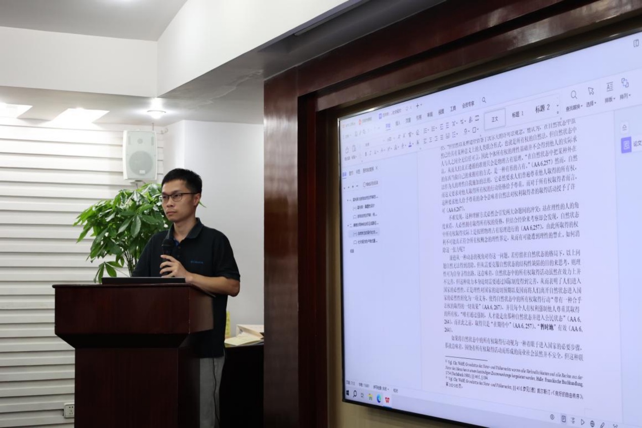 汤沛丰的报告题目为“若隐若现的现代社会——论康德法哲学中的自然状态与社会契约”,主张康德借鉴了霍布斯的自然状态模型与欧陆近代自然法传统的所有权来构建向法治国家过渡的道路。
