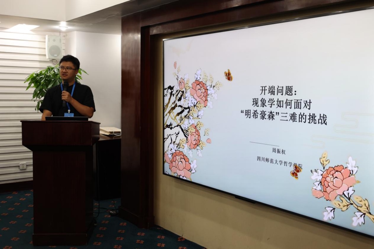 周振权的报告题目为“开端问题:现象学如何面对‘明希豪森’三难的挑战”,他试图运用现象学的三条原则,即开端源于直接明见的认识,直接明见的认识可以被重证,明见性认识的否证不可能成立,回应明希豪森“三难困境”,即关于开端的无穷倒退、逻辑循环、终止论证。