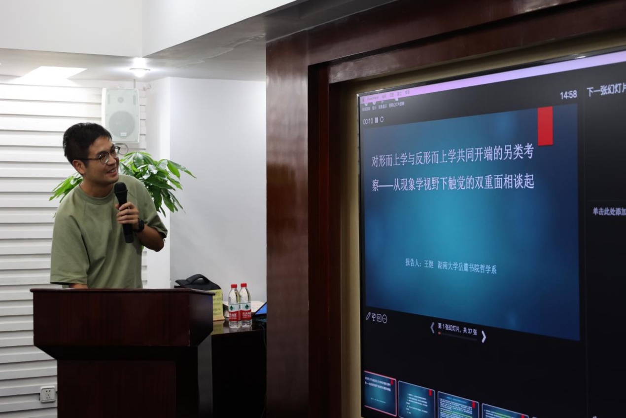 王继的报告题目为“对形而上学与范形而上学共同开端的另类考察——从现象学视野下触觉的双重面向谈起”,他在哲学史中梳理出一条触觉作为认识行为之奠基的线索,试图建构一种触觉中心认识论。