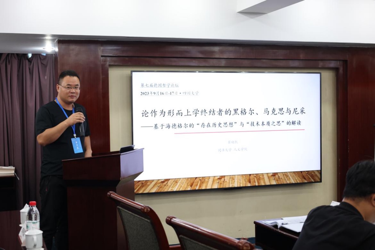 窦绪凯的报告题目为“论作为形而上学终结者的黑格尔、马克思与尼采——基于海德格尔的‘存在历史思想’与‘技术本质之思’的解读”,他认为海德格尔通过将形而上学的历史看作一个完整的发展过程并且将黑格尔、马克思与尼采的哲学视作这一发展过程的终结,同时将技术本质的全球统治的展开看作这一发展过程和终结的最终结果,从而将技术本质的全球统治解释为形而上学历史的一个必然环节。