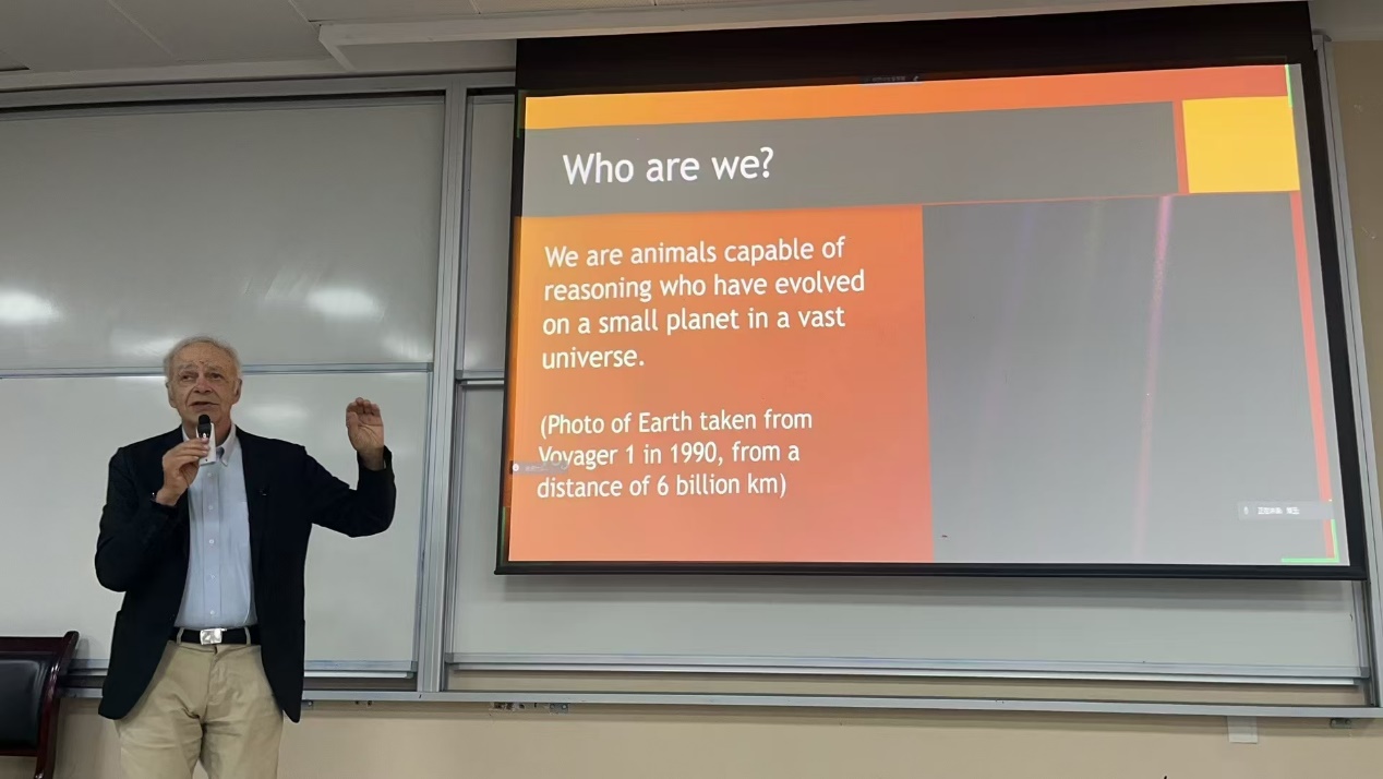 讲座开始,辛格教授解释了我们虽只是这浩瀚宇宙里的一个小星球中进化出来的生物,但我们作为理性思考的动物给予自己生命以绝对的意义。他讲到伦理生活与自我满足可以协调,利他行为并不必然导致自我损失,而是一种自我成就。他以慷慨为例,解释了这一哲学道理。最后辛格教授以人生意义问题作结,他讲到我们人类是追求意义的动物,将人生目标放在有意义的事上,并不吝行动,追求知行合一,自然会过上一种伦理的、美好的、有意义的生活。