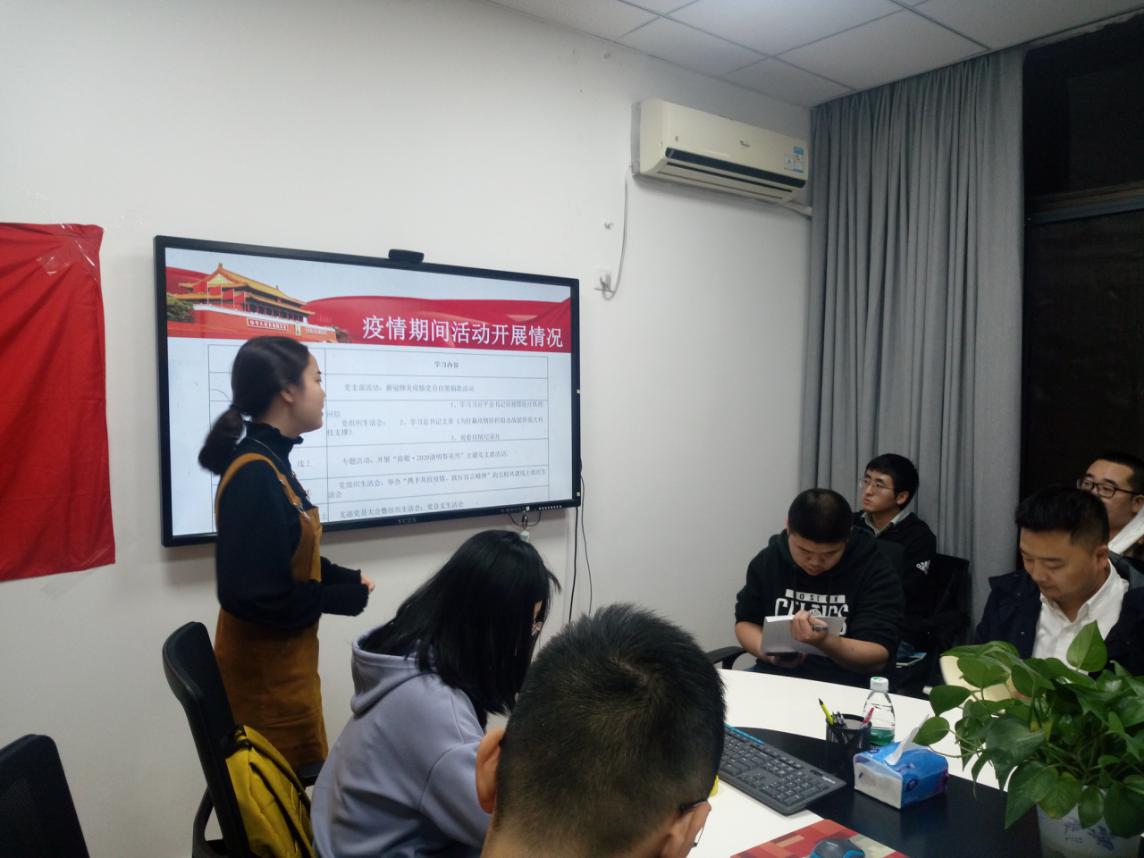 第二项议程为支部党务公示。赵濛锐同志首先从支委成员、正式党员与预备党员人数方面介绍了党支部人员构成,然后分别从新冠肺炎疫情党员自愿捐款活动、学习总书记文章《为打赢疫情防控阻击战提供强大科技支撑》线上活动、“致敬·2020清明祭英烈”主题党支部活动、“携手共抗疫情,践行宣言精神”的五校共建线上组织生活会、支部党员大会暨组织生活会:党总支生活会等方面回顾展示了疫情期间支部开展活动成果。