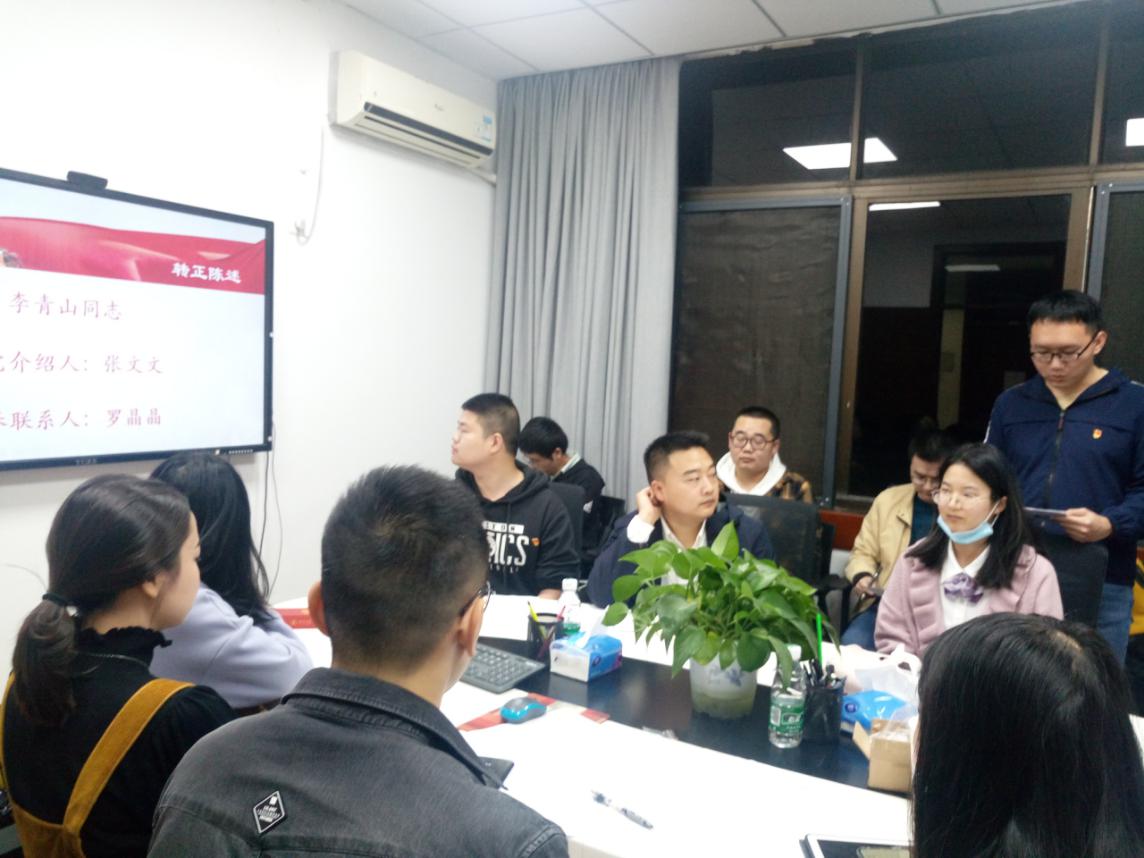 稍后为预备党员转正票决。刘兴健、翟康、周晴思月、李青山与石娜娜五名同志,以及五位预备党员的入党介绍人、培养联系人先后作了陈述。经过投票、计票和统票等环节,一致同意五名同志转为正式党员。