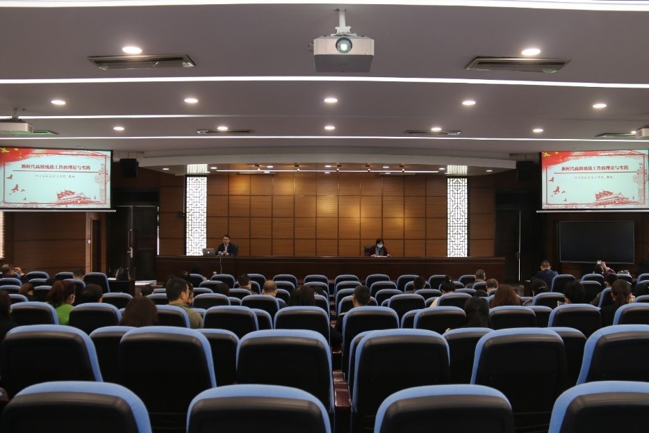 培训会邀请了四川省社会主义学院教研室主任颜旭以“新时代高校统战工作的理论与实践”为题开展专题培训,颜教授从“统一战线是什么?”“统战工作做什么?”“统战工作谁来做?”“统战工作怎么做?”这四个方面对高校统战工作提出若干思考。