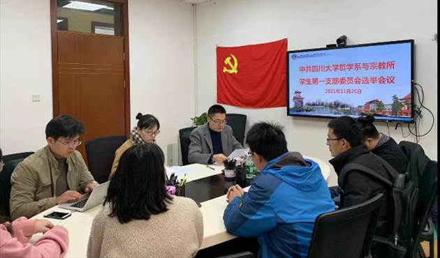 2021年11月26日,哲学系与宗教所学生第一党支部在文科楼205会议室举行支委选举会,并由党总支李裴副书记讲授“党支部规范化建设”专题微党课,会议有党总支党政办胡康林同志主持。