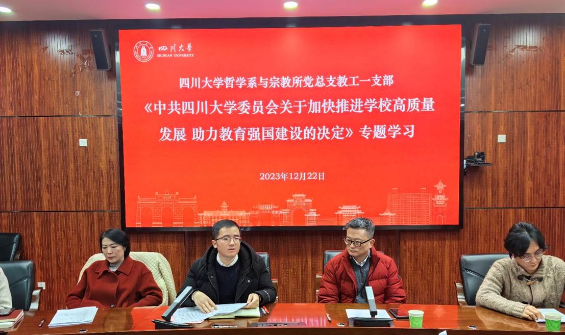 2023年12月22日下午,哲学系与宗教所教工一支部在文科楼200会议室,开展了组织生活会及“推进学校高质量发展,助力教育强国建设”专题学习活动,会议由党支部宣传委员兼纪检委员朱己祥同志主持。