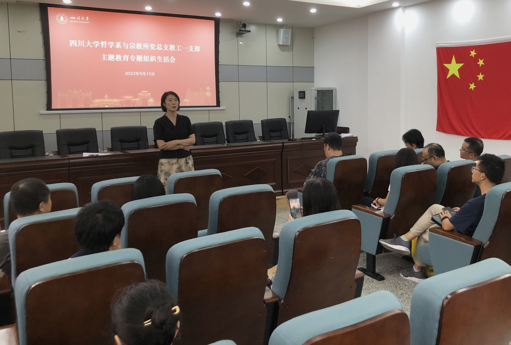 2023年9月15日下午,哲学系全体教职工大会、新学期工作布置会暨政治学习会议在望江文科楼158召开,全体教职工参加会议,会议由史冰川书记主持。