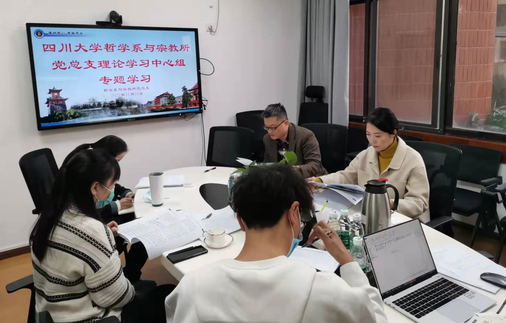 11月10日下午,哲学系与宗教所党总支理论学习中心组在文科楼205开展专题学习,全体党政班子参加学习,学习主题为习近平总书记教育重要论述,专题学习由史冰川同志主持。