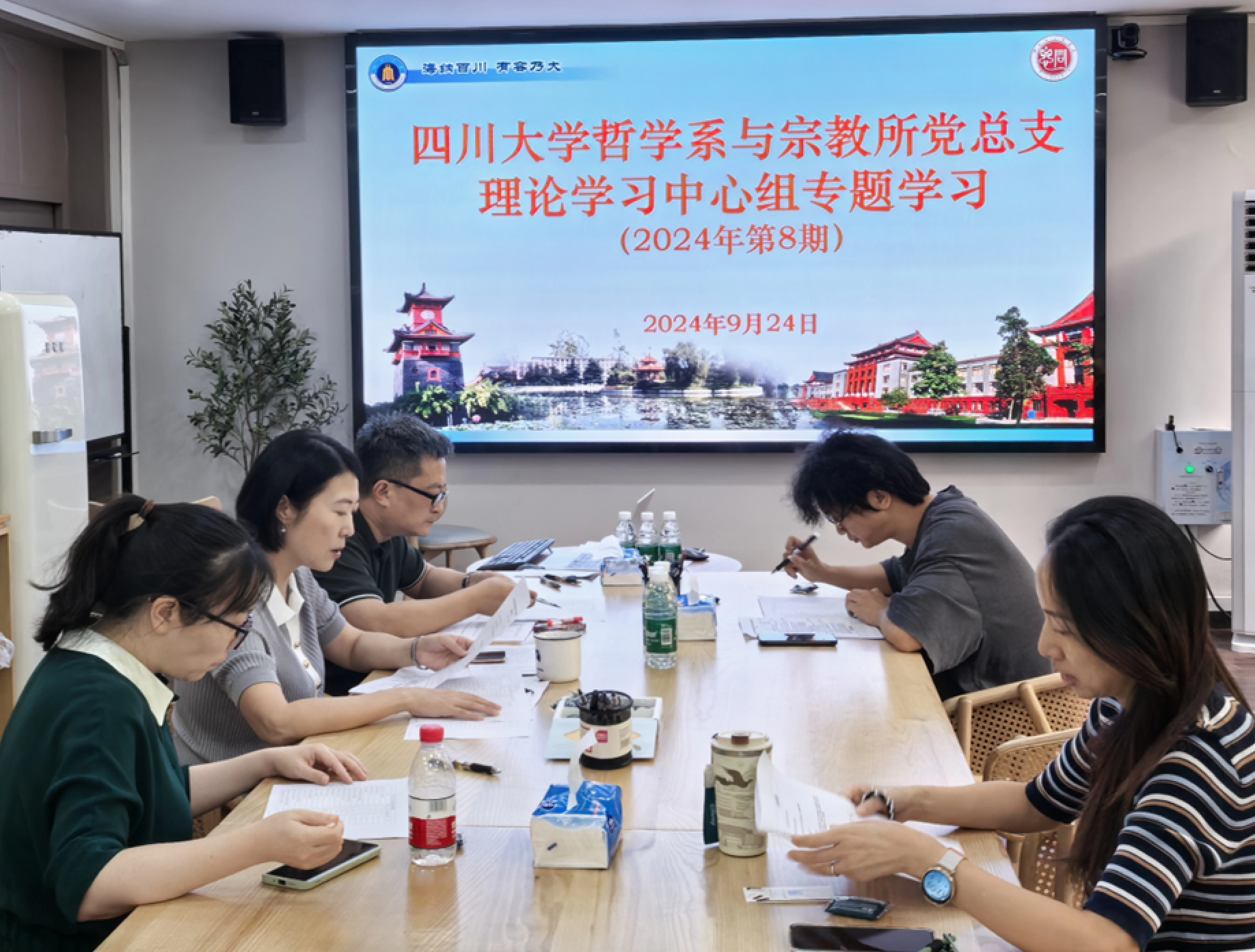 2024年9月24日,122cc太阳集成游戏哲学系与宗教所党总支理论学习中心组在文科楼323会议室开展,全体领导班子成员参加,会议由党总支史冰川书记主持。