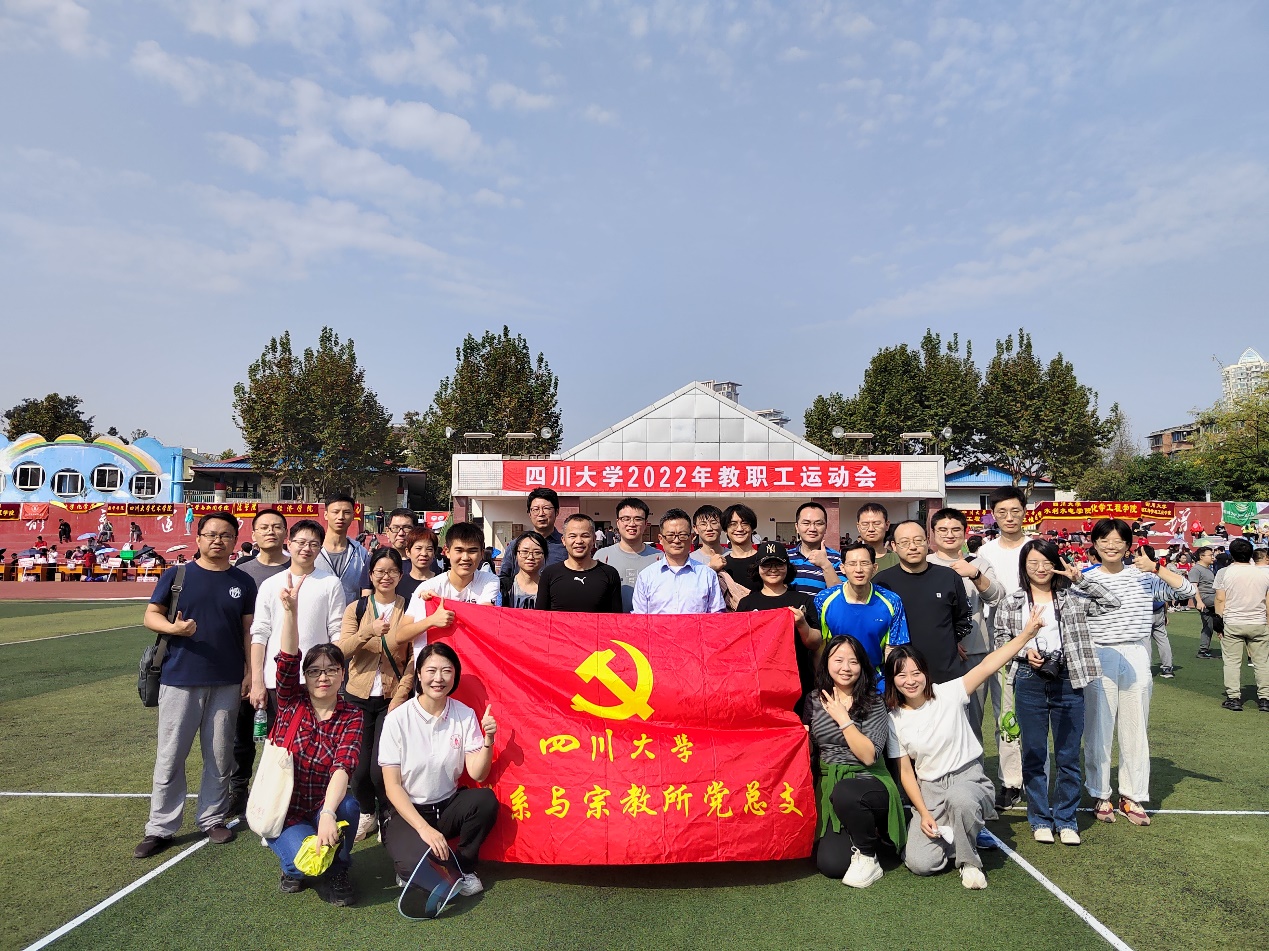 2022年10月21日,122cc太阳集成游戏2022年教职工运动会在望江校区东区体育场举行,来自全校共42个单位教职工参赛,哲学系与宗教所党总支教职工积极报名参加了此次运动会,党总支全体领导班子到现场为教职工运动员加油鼓劲,并参加了多个比赛项目。