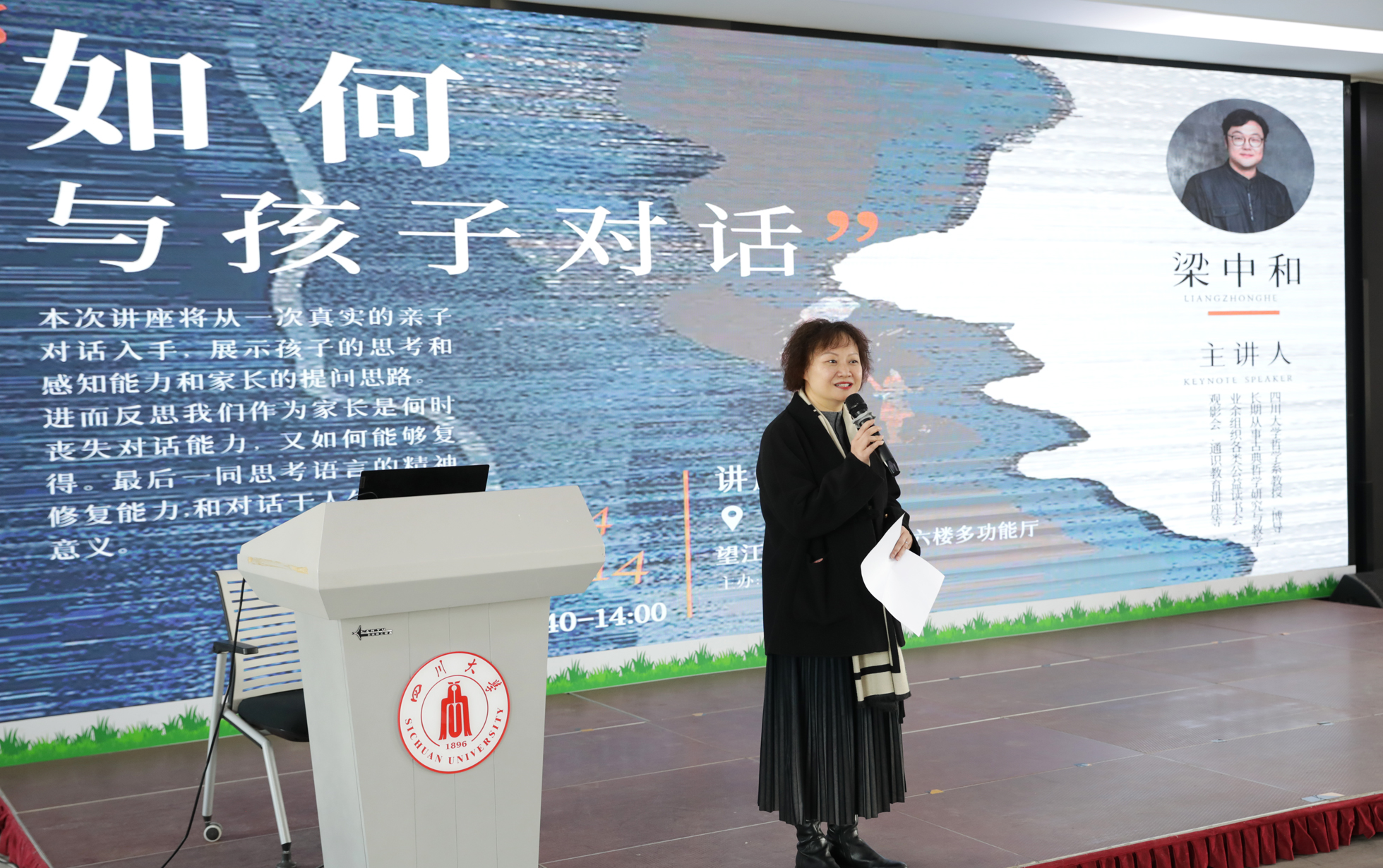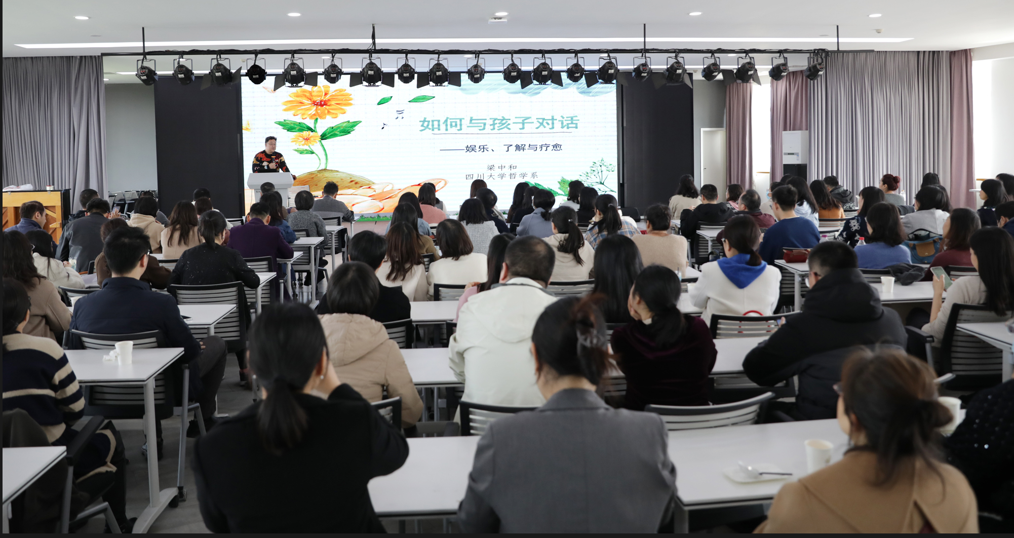 2024年3月14日,由校工会、哲学系与宗教所工会共同主办的“如何与孩子对话”主题讲座在文华活动中心六楼多功能厅顺利举行,讲座由哲学系梁中和教授主讲,来自全校140余名教职工参加了此次讲座,讲座由校工会副主席冷泠主持。