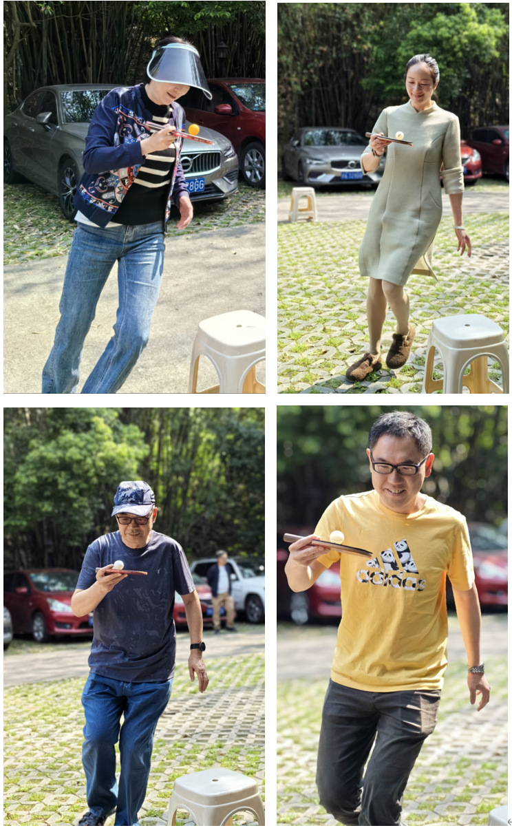 上午老师们抵达目的地后,开展了乒乓运球、抛球入筐和拔河比赛等趣味活动。