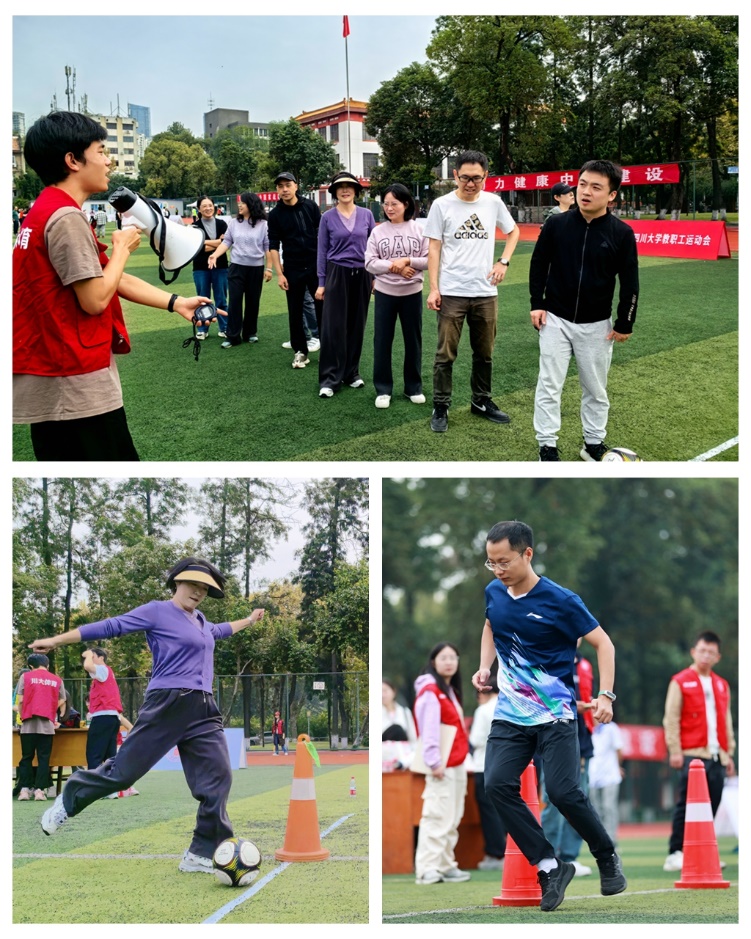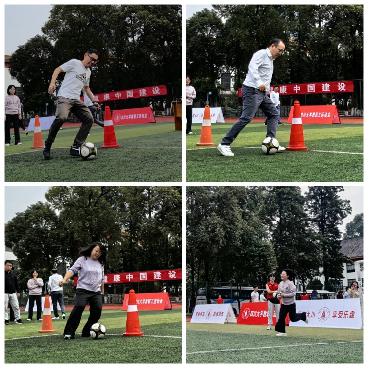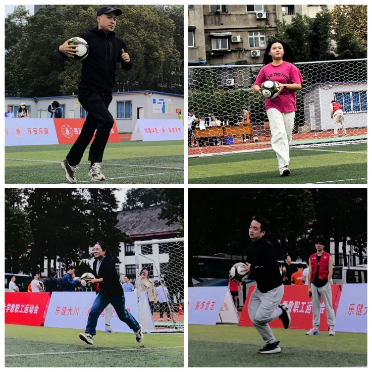 本次教职工运动会,老师们报名参加了绕杆射门、抛球入筐等集体项目,以及双摇跳、跳远等单项项目。