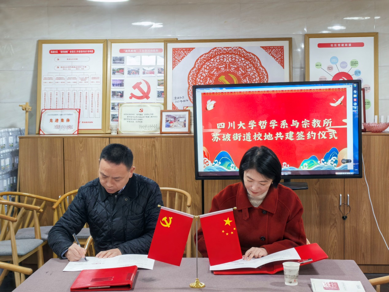 随后史冰川书记代表党总支与苏坡街道签订《122cc太阳集成游戏哲学系-苏坡街道办事处合作框架协议》,并洽谈党建、工会、人才培养和校地联动等方面的合作方向和建议。