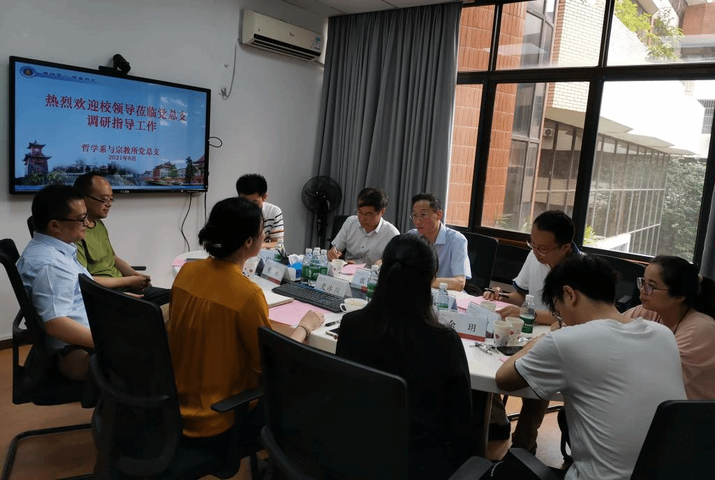 6月16日上午,122cc太阳集成游戏党委副书记兼纪委书记张卓同志到哲学系与宗教所党总支调研指导工作,校纪委副书记兼巡察办主任范嗣云同志、校巡察办综合科科长许海青同志和校纪委执纪审查室副主任李为之同志一同参加,哲学系与宗教所总支委员参加调研会,会议在文科楼205开展。