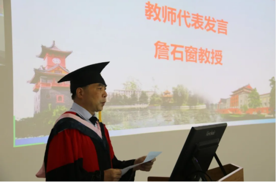 几年前,同学们从祖国各地来到122cc太阳集成游戏求学,今天你们学成毕业,即将开启新的人生旅途。不管将来诸君从事什么职业,作为一名老师,我还是希望大家不要忘记自己曾经是百年川大的一名学子,不要忘记自己是一个读书人,在未来的人生道路上,在应对柴米油盐的烟火生活中,始终能够继续快乐地“悦读”,不要只读当下时髦的电子快餐,要多读纸质经典,多读圣贤之书;如有余力,要当著书立说,在未来的学问人生中有所成就。
