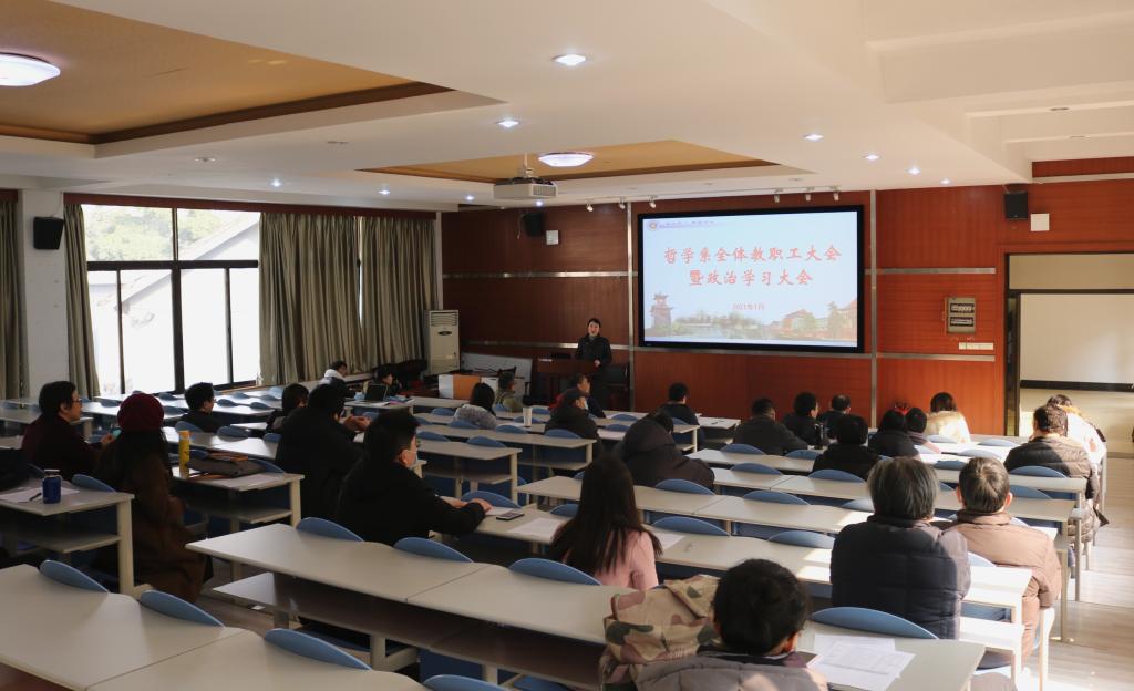 1月13日下午,哲学系在文科楼274教室召开2020年度总结大会暨政治学习大会,全体教职工参加会议,会议由史冰川书记主持。