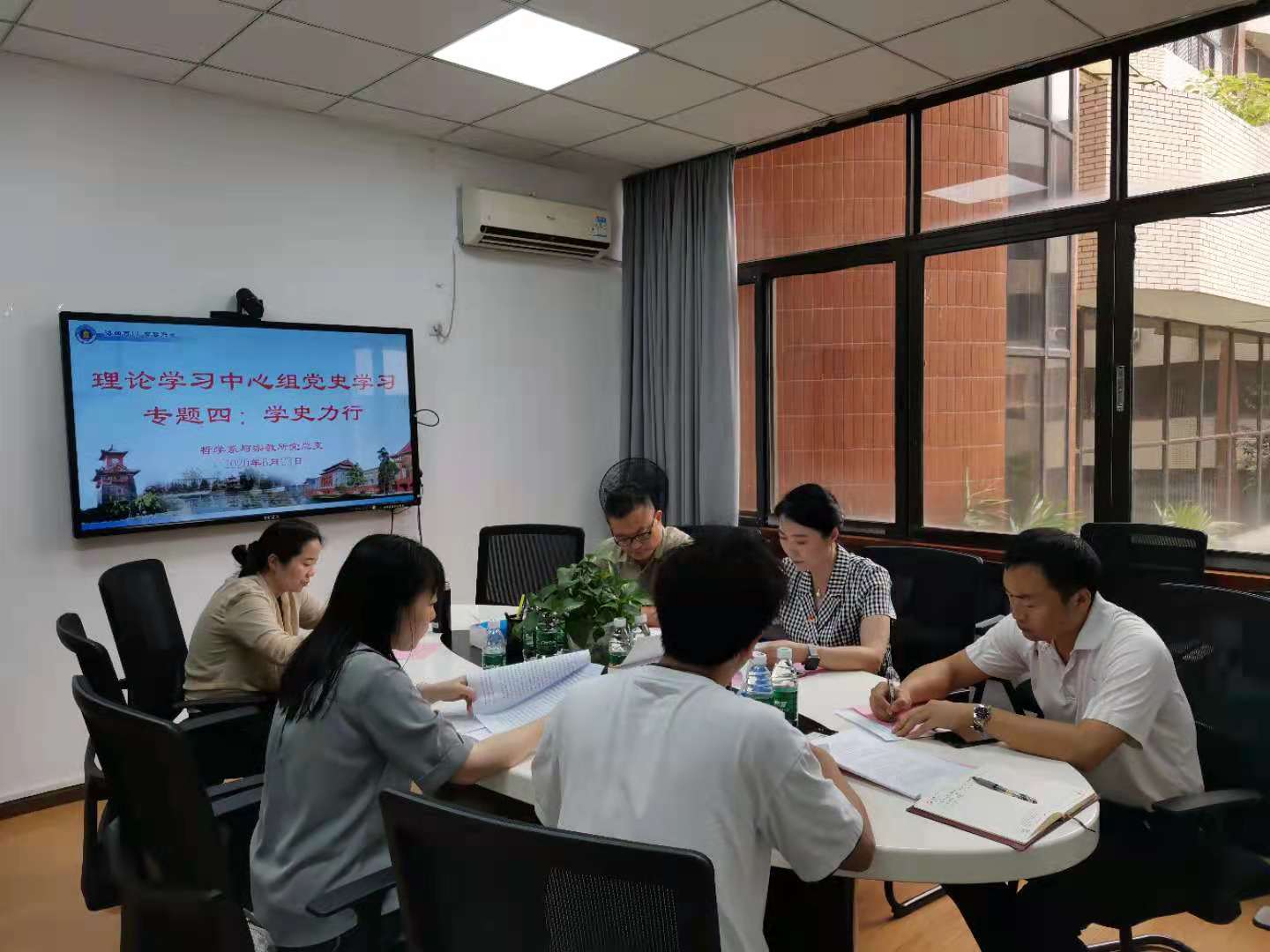 6月23日下午,哲学系与宗教所党总支理论学习中心组在文科楼205开展“学史力行”专题学习,全体党政班子成员参加学习,专题学习由党总支书记史冰川同志主持。