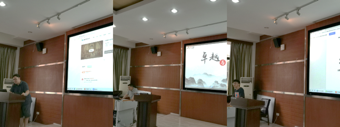 紧接着,由MOOC和混合式课程建设负责人分享课程建设经验,依次是梁中和老师负责的MOOC《古希腊哲学的繁荣》 、曾海军老师负责的混合式课程《中华哲学》、余玥老师负责的MOOC《从德国古典哲学到马克思主义》,通过课程建设成果的展示与经验分享,老师们对在线课程建设有了更为直观形象的认识与了解。