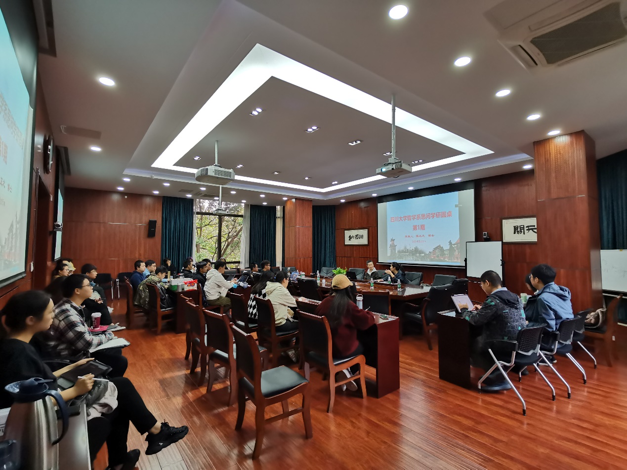 10月15日,系青年教师陈正之面向全体本科生和研究生做了“值域悖论与现象情景主义的解决方案”的报告,系副主任曾怡参加,并与在场学生就心灵哲学专业学习与研究未来思维角度进行了交流,极大拓展了学生视野。