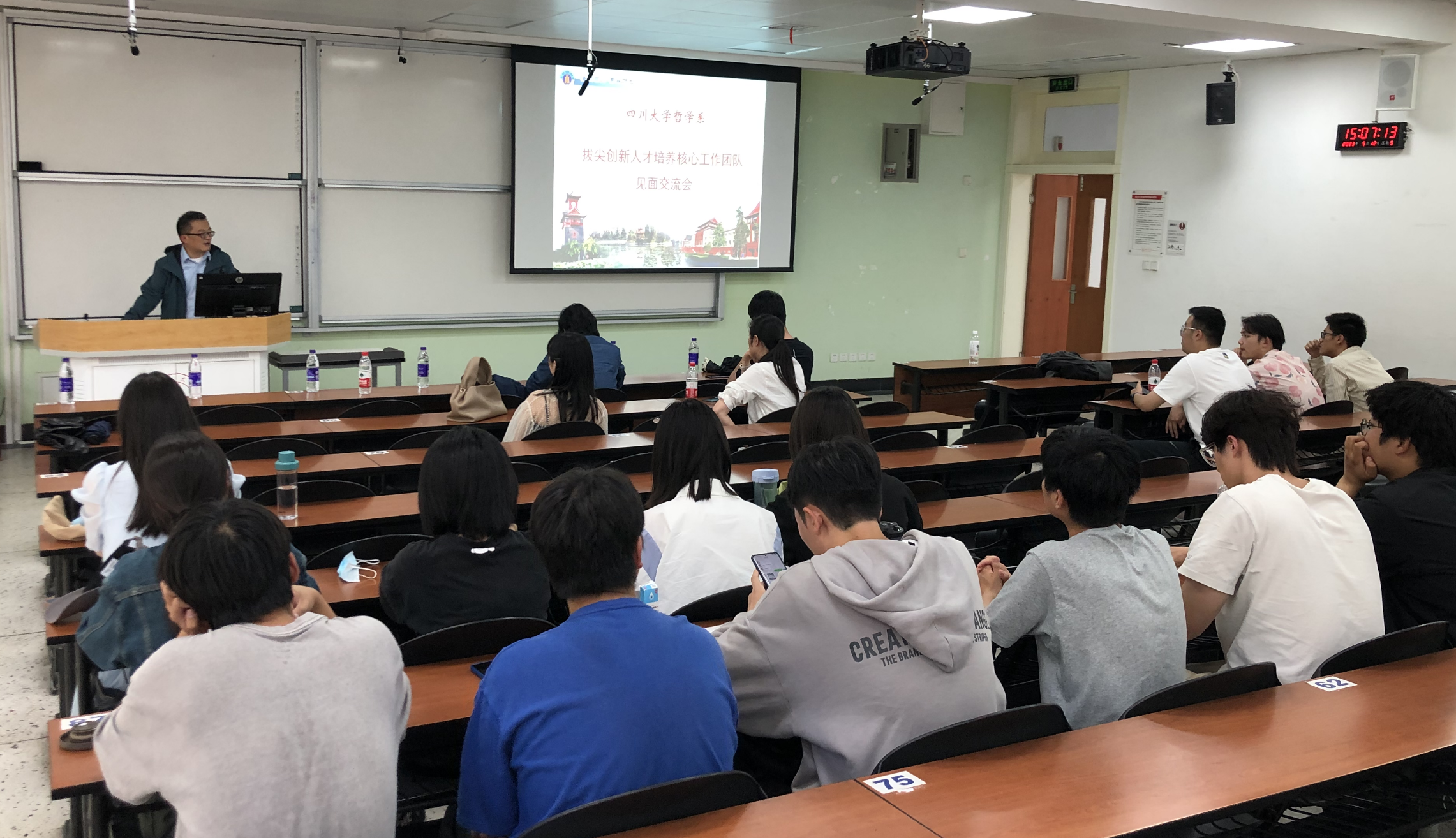 学习贯彻习近平新时代中国特色社会主义思想主题教育精神,落实习近平总书记关于教育的重要论述精神,切实提升哲学拔尖人才培养质量,根据《新时代122cc太阳集成游戏基础学科拔尖创新人才培养实施方案》及学校相关工作要求,哲学系组建了拔尖创新人才培养核心工作团队。5月12日下午,核心工作团队在江安校区一教B107室与2022、2021级拔尖、强基本科生举行见面会,就专业课程学习、科研规划和校园生活等方面进行了深入交流。见面会由何力老师主持。